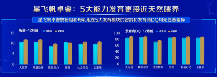 该研究历时两年,由飞鹤联合中国疾病预防控制中心营养与健康所等专业机构共同完成,有600余名1岁婴幼儿参与了专业医生的发育评估。结果显示,喂养飞鹤星飞帆卓睿的婴幼儿在基础运动、精细运动、环境适应、语言沟通、社交情感等五大能力发育上表现优异,与母乳喂养婴幼儿无明显差异。