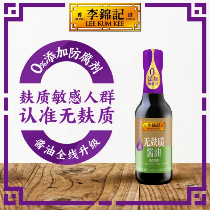 针对近年来在国内外流行的“无麸质”饮食,李锦记早在2013年就研发出了无麸质酱油配方,并在中国、美国、英国、澳大利亚、新加坡等全球30个国家和地区上市。国内版的李锦记无麸质酱油2024年升级为紫冠零添加防腐剂系列,实现“四零一鲜”(无麸质、零防腐剂、零甜味剂、零味精,鲜味自然)的技术突破。更值得一提的是,2025年3月4日,由李锦记主导制定的 T/CIFIA 233-2025《无麸质酱油》团体标准正式实施,凭借深厚技术积淀与创新实力,李锦记在无麸质酱油领域成为行业标杆。