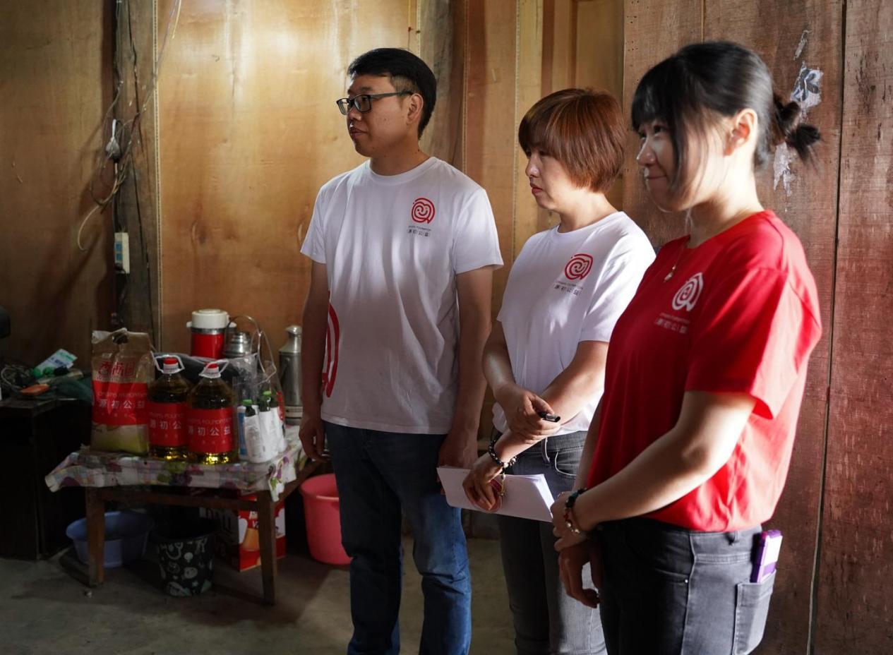 爱心捐赠仪式结束后,源初公益基金会团队又来到困难村民的家中,送去爱心物质,了解家庭成员、日常收支、孩子上学等具体情况。