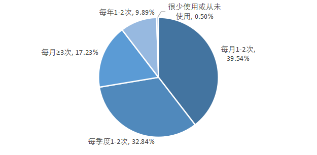 从平台使用频率来看,用户使用习惯呈现分层特征。每月使用1-2次的受访者占比最高,达39.54%;每季度使用1-2次的用户占比32.84%,两者合计超70%,构成了在线旅游平台的核心用户群体;每月使用≥3次的高频用户占比17.23%,主要为旅游爱好者或商务出行人群;每年使用1-2次及很少使用/从未使用的低频用户占比分别为9.89%0.50%,整体使用频率分布符合大众旅游消费的周期性特征。