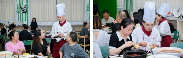 家,可以是有意思的,也可以是有温度的。家里的味道,可以是餐桌上的饭香味,也可以是某一道有故事的菜——5月20日,在这个全民表达爱的日子里,2023级李锦记希望厨师成都班的同学们以情入味,用李锦记酱料调味,烹制出一桌“家宴”,举办“一席家宴·一声感恩”为主题的感恩宴,以家宴为纽带,邀请李锦记及其经销商、公益合伙人及学生家长们齐聚成都财贸职高,通过亲手烹制菜肴、分享感恩故事等形式,传递温暖与谢意,营造浓厚的温情氛围。