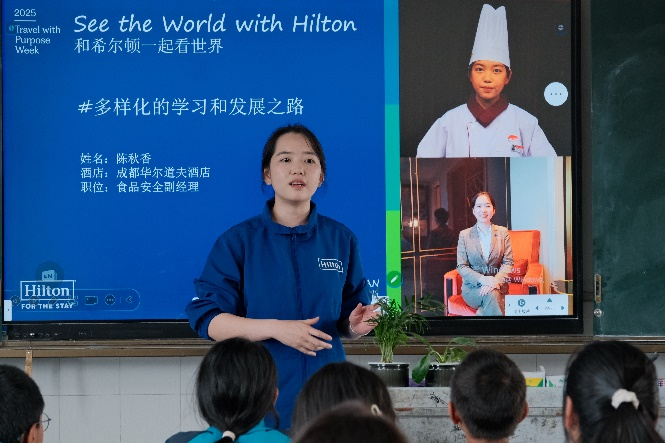 这次,她是成都华尔道夫酒店的食品安全副经理,来到距离成都450公里的喜德县圆梦学校,面对的是一群十四五岁的初中生,将自己的学习发展故事分享给大家:出生在广西桂林小乡村的陈秋香,在2016年之前没有离开过家,“第一次坐火车是参加李锦记希望厨师项目的面试,坐车到广州。”再后来,她通过了面试,成为一名李锦记希望厨师,坐着火车来到成都,进入成都财贸职高学习中餐烹饪。2018年4月,陈秋香第一次搭乘飞机,第一次到中国香港,代表李锦记希望厨师在李锦记130周年创业纪念日上展示厨艺。6月,她加入成都希尔顿酒店,成为一名点心厨师,开始了在“以前想都不敢想的五星级酒店”工作的日子。