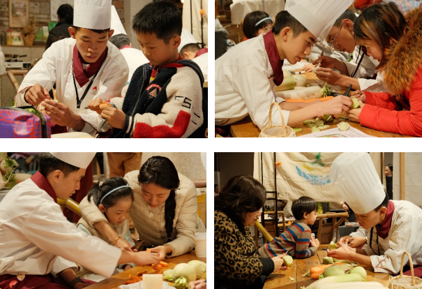 邱邱是一名二年级的小朋友,妈妈为他报名了李锦记希望厨师的萝卜花工坊,“萝卜在我们家都是用来吃的,出现在餐桌上的食物,今天发现它还可以雕成花成为艺术品。”在李锦记希望厨师沙贵发的指导下,邱邱完成了对胡萝卜、心里美和青萝卜的艺术改造,三支风格各异的花虽稚嫩却也栩栩如生,“非常满意这次手工课,感觉自己很厉害”。