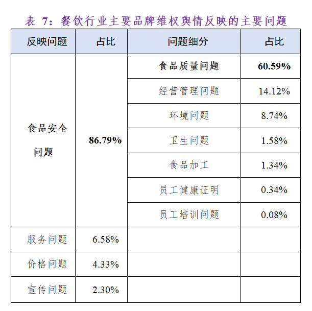 (1)餐饮行业主要品牌消费维权舆情问题分析