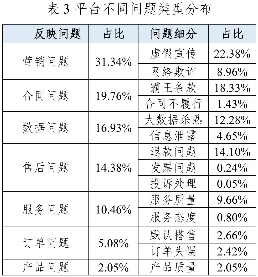 第三需要关注的是数据问题中的大数据杀熟问题以及售后问题中的退款问题。随着互联网以及大数据技术的快速发展,大数据杀熟的问题也日益严重,不同用户在同一平台同一时间下单同一产品,其价格却有高有低,不仅违反《消费者权益保护法》,而且不符合《反垄断法》的相关规定。此外,售后的退款问题舆情占比较高,也反映出在线平台在退款流程方面存在优化的必要。