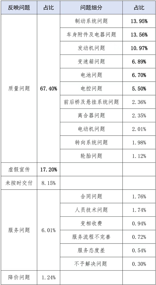 “质量问题”高居汽车消费维权首位 占比超6成